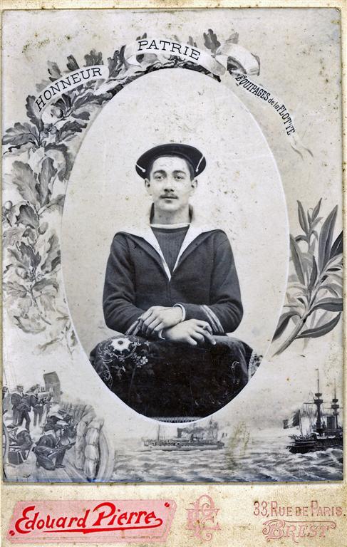Photo de Aristide GUESDON à 20 ans durant son service militaire à Brest en 1902 (de la part de Michel Blanchard son petit-fils). |