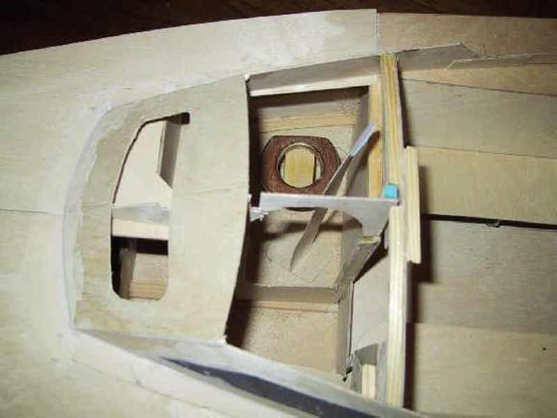 On distingue sur la maquette le poste avant avec le coin toilette avec lavabo et WC (admirez la cuvette à l'échelle...).