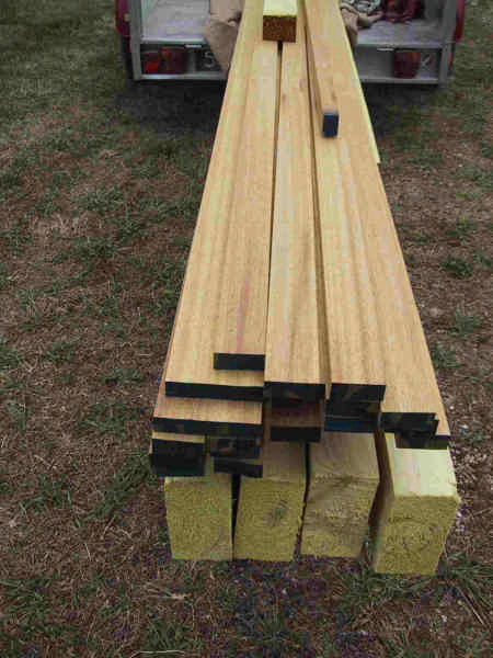 Approvisionnement du bois massif iroko pour les lisses, serres et renforts, ainsi que le bois de charpente pour le chantier |