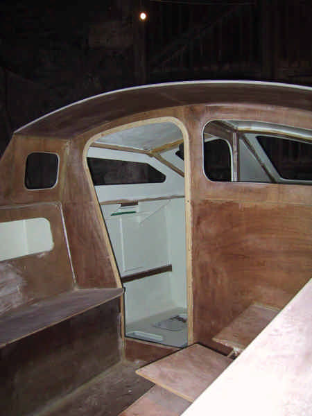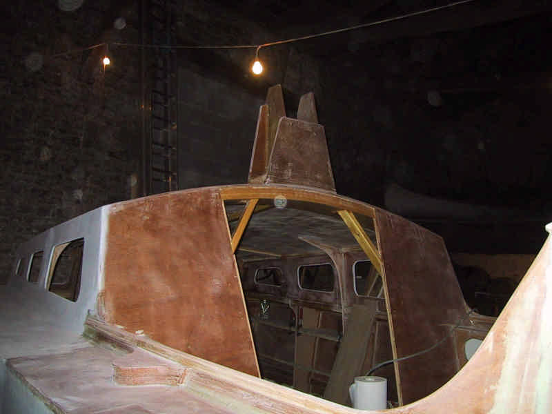 Le cockpit est complexe : il abrite le système de mise en oeuvre des ballasts (air sous pression, pompe électrique et pompe manuelle) et les témoins de remplissage, le gaz pour la cuisine, les systèmes de renvoi de barre pour la barre franche et l'AOC, et des coffres de toutes tailles partout. La partie avant comprend un abri de navigation.