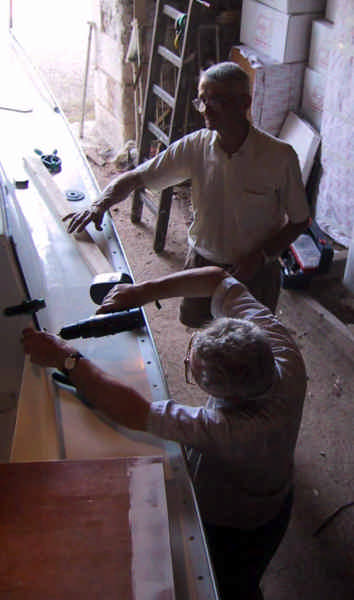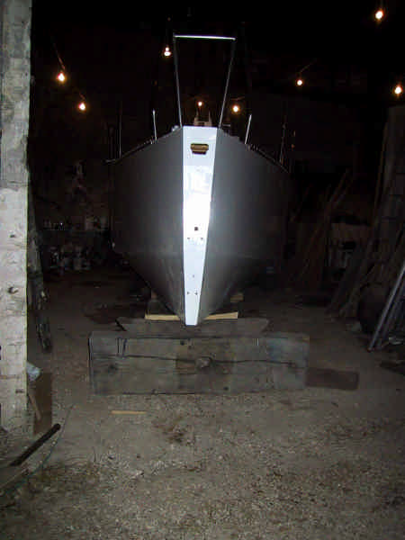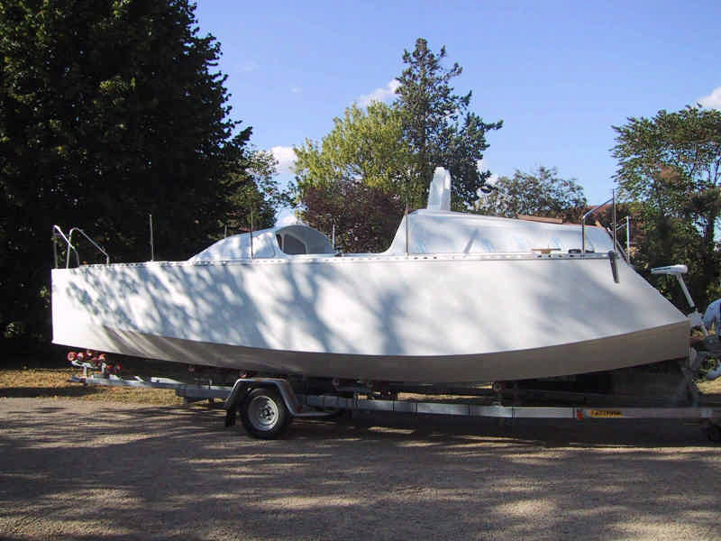 Presque à l'eau... tout est prêt : système de propulsion électrique, mouillage, pompes et ballasts, cuisine et salle d'eau, couchettes, voiles, balcons et chandeliers, barres et AOC, ... mais au dernier moment, sur le quai de La Rochelle, les barres de flèche montrent un défaut de réalisation (degré de liberté de mouvement de haut en bas au lieu d'un mouvement horizontal) : retour à Jaunay. Déception... et ça repart.