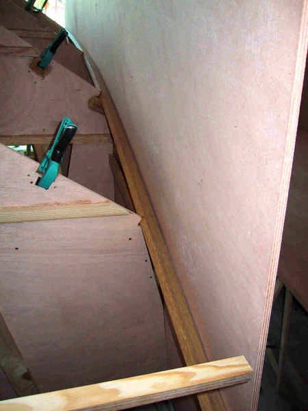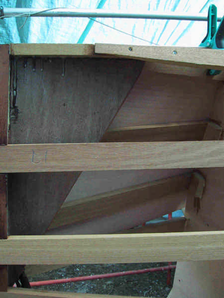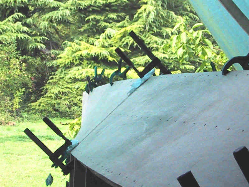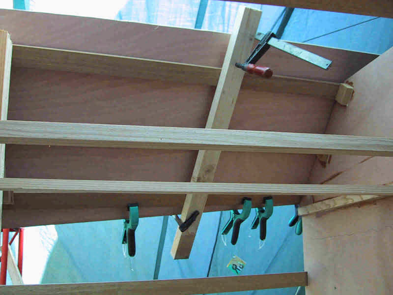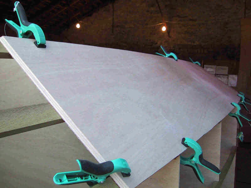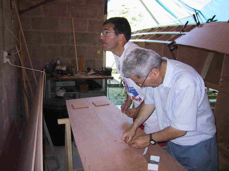première étape : dessin des bordés par application sur les lisses, ensuite découpe et pose, avec collage epoxy et vis.