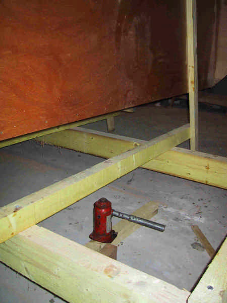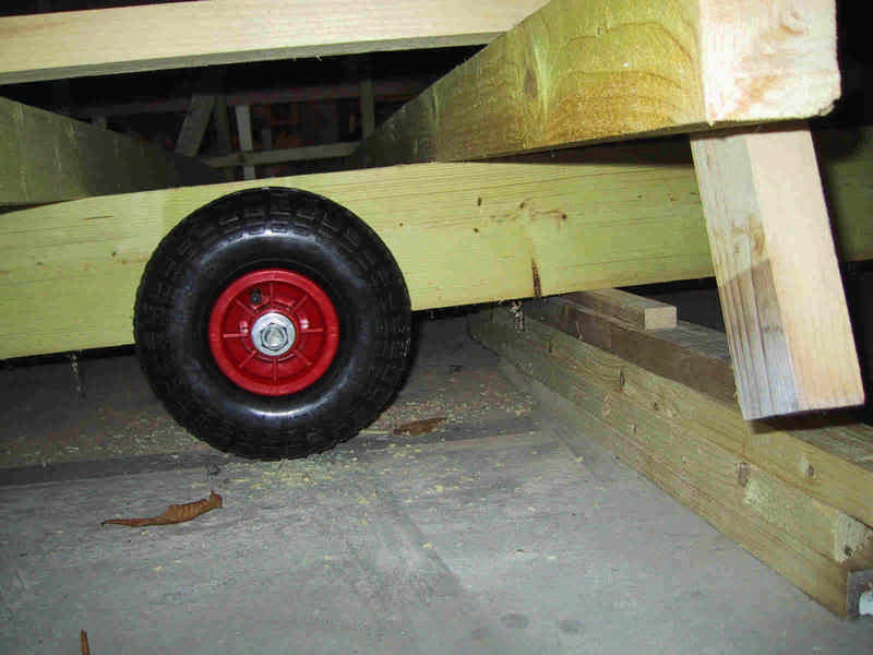 Pose de 4 roues sur les bastaings du chantier