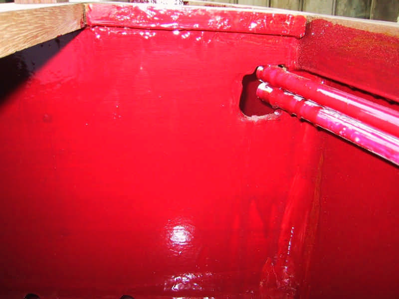 La baille est peinte avec une peinture polyuréthane spéciale piscines, réservoirs et parkings.