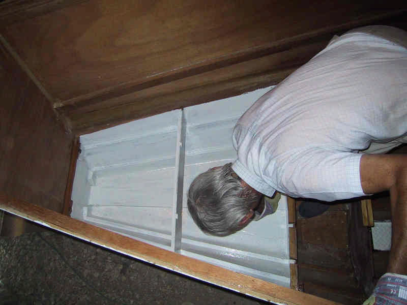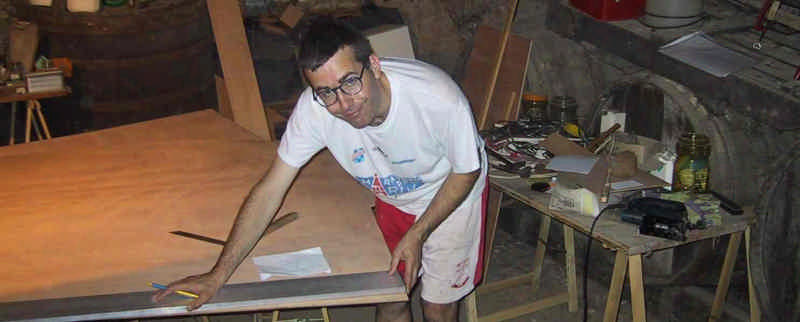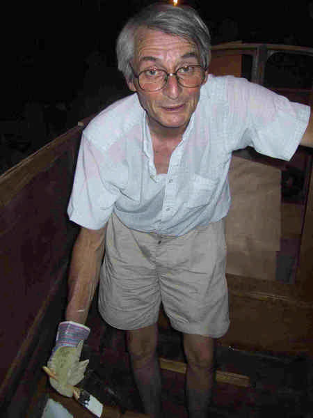 Paul découpe le plancher du triangle avant - le père Asty peint les fonds.