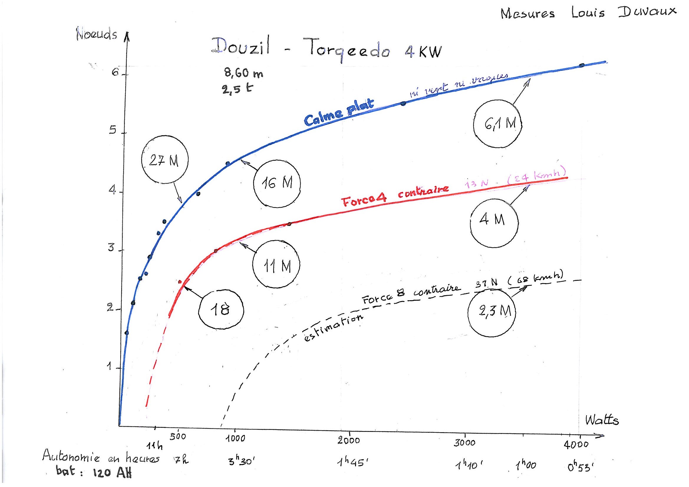 Le Torqeedo est un équivalent 10 CV thermique. il pousse la carène au maximum à 6 noeuds.