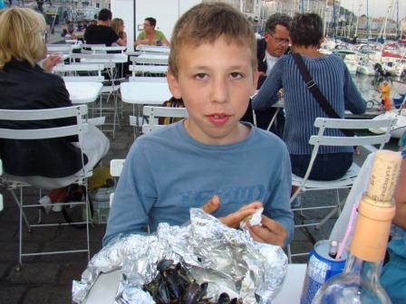 bonjour Tous se passe bien à bord! Louis et moi nous somme allée au vieux port de la Rochelle. Nous avons mangé à un restaurant en pleine airs, Louis à choisis de prendre des huitre en entrée, et moi j' ai pris des moules, nous nous somme régalés. (voir photos à gauche + ci dessous.) |