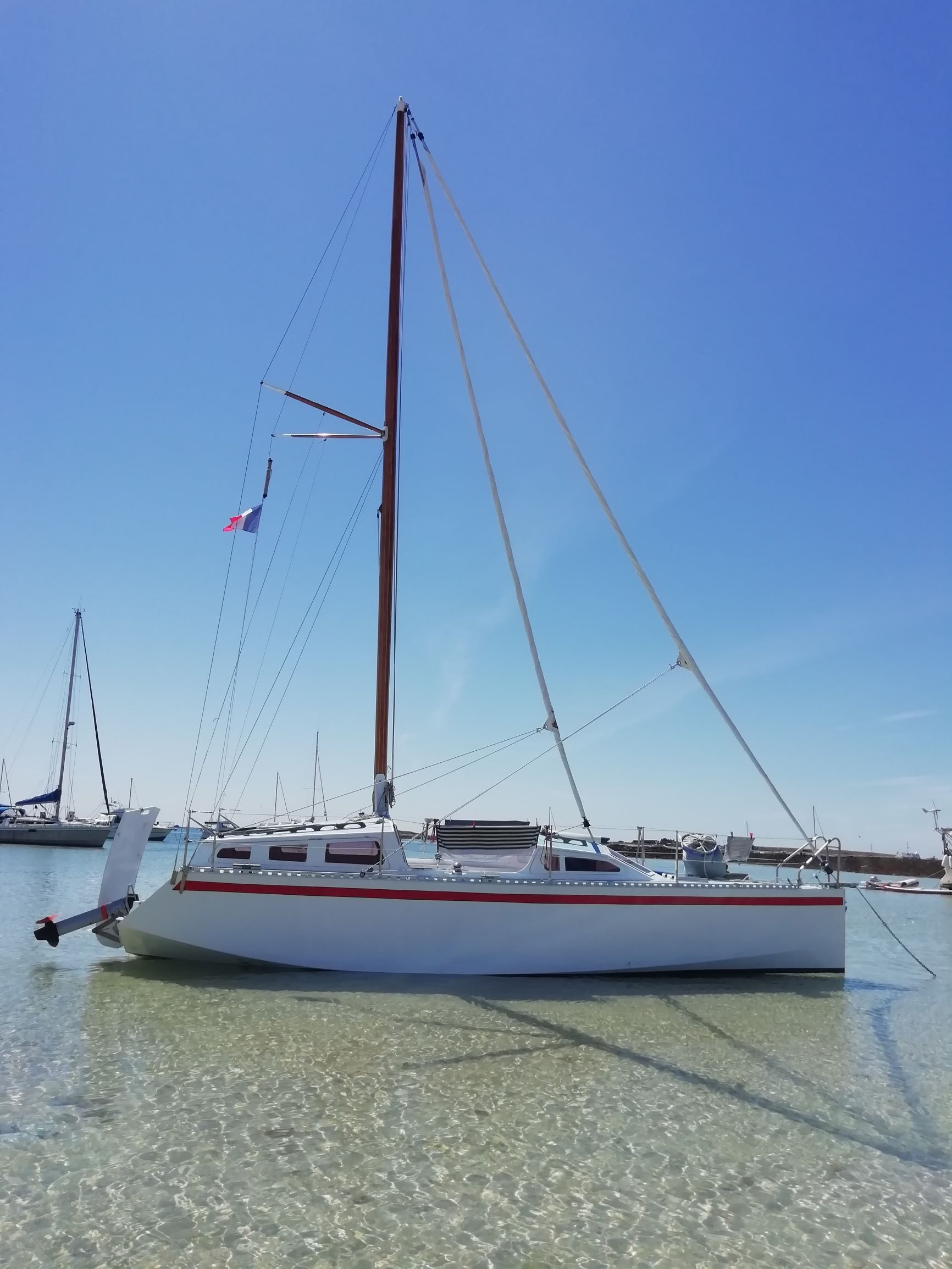 Mise à l'eau à Loctudy avec Paul et Michel. Ballades avec Claire, Gaël, Maël, Alix et Mila. Puis 3 jours avec Matthieu dans le triangle Concarneau, Les Glénans et Loctudy.